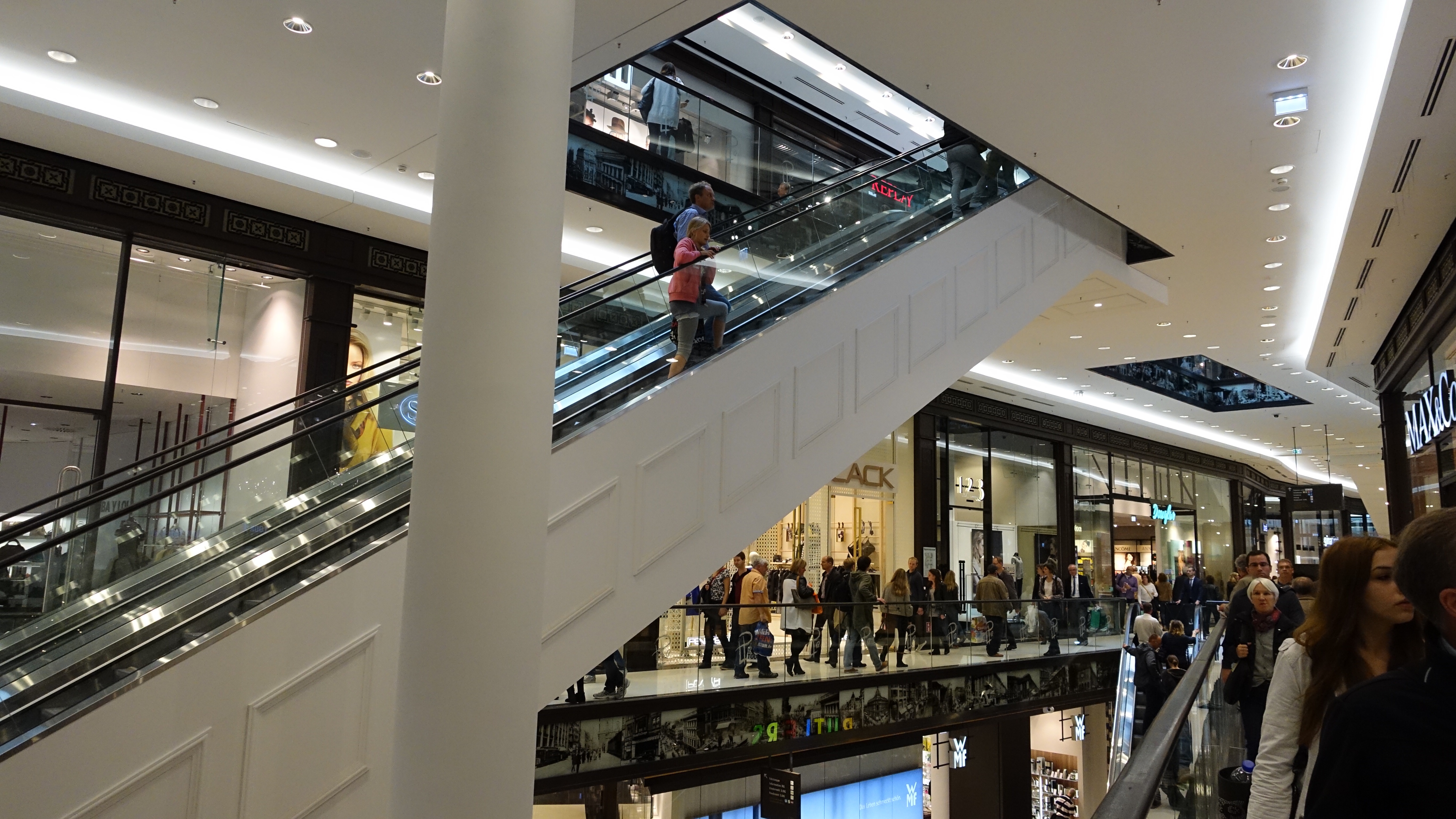 Germans, they know how to do a high class shopping mall. The highest of the high end shops, impossibly beautiful young women handing out free samples of perfume, cigarettes and chocolate, and the seats that tired shoppers sit upon between shops were crafted of rich wood and leather.