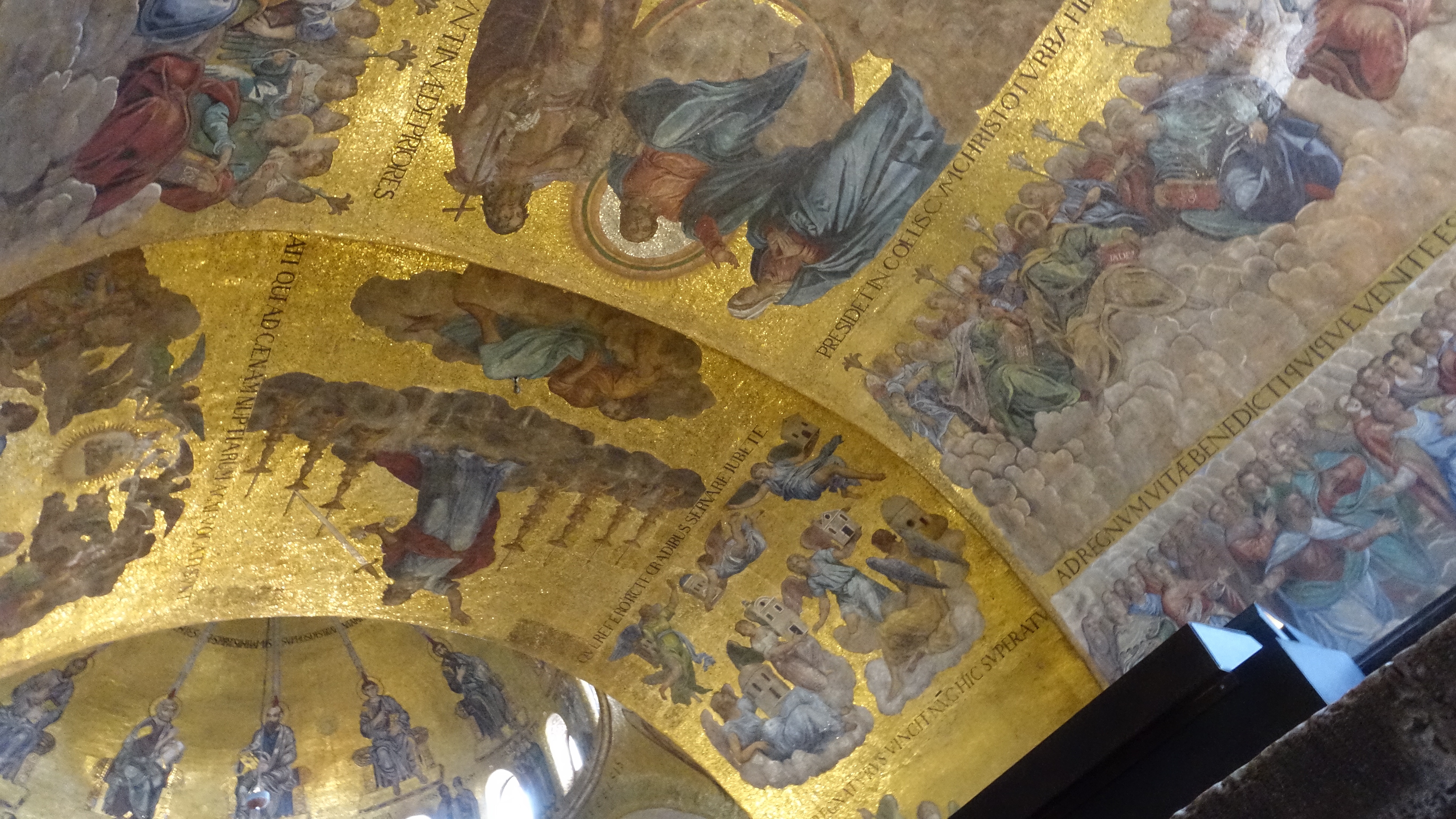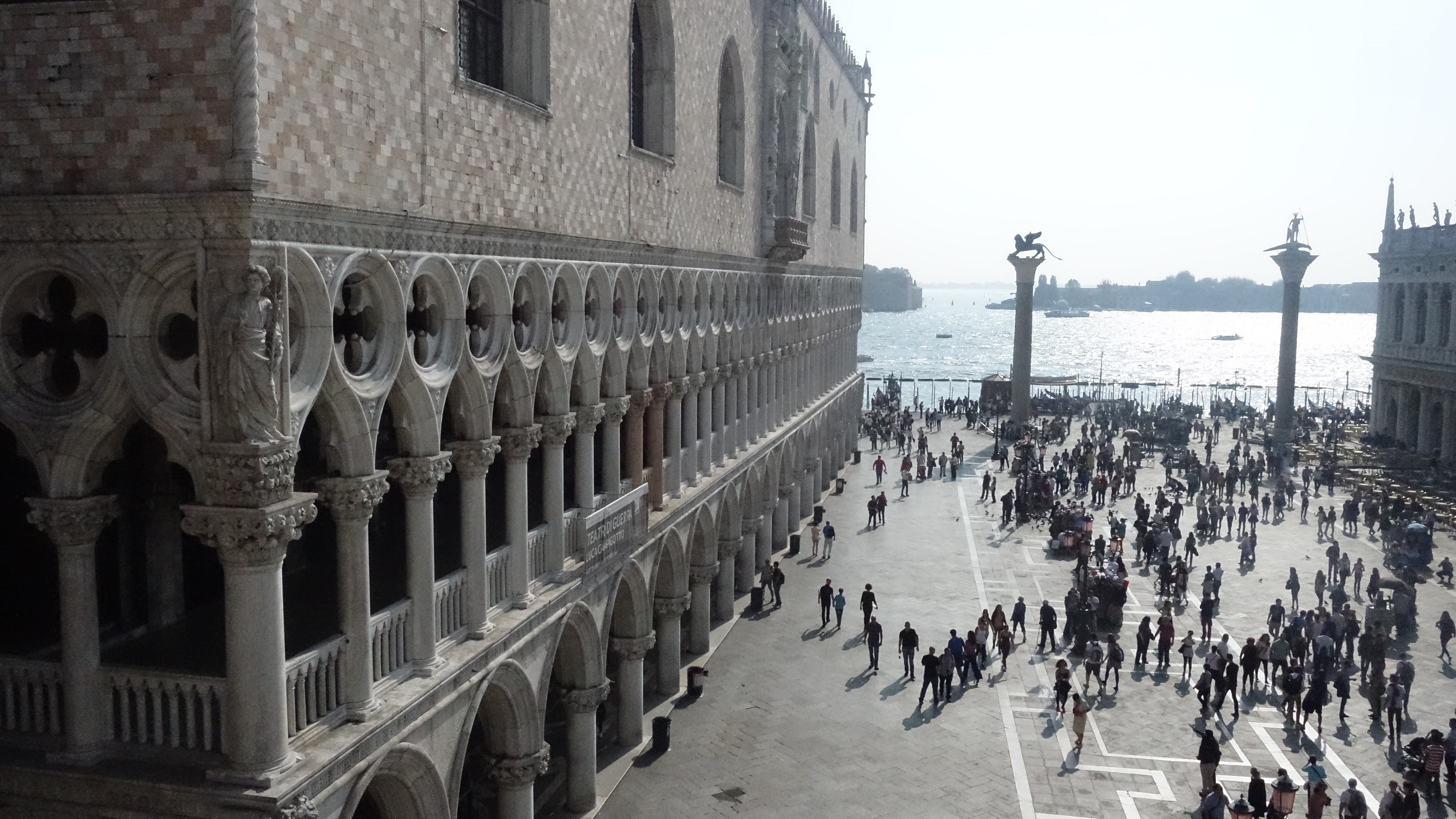 Saw the Doges palace. Here again I’m gonna show how incomplete my education has been. I did not know that Venezia had been part of the Byzantine Empire. That is huge. I really should have finished college. Took the audio tour of the palace. Wonderful artwork, some of the best Renaissance stuff I’ve seen. The enormous painting of the Battle of Lo Panto in the main meeting room is on a scale that I would not have thought possible. It was 10 meters high at least, and 12 or 13 across. Much of the artwork was allegorical, and without fail, when Venezia was represented, it was as this beautiful and blessed Queen of the Seas.