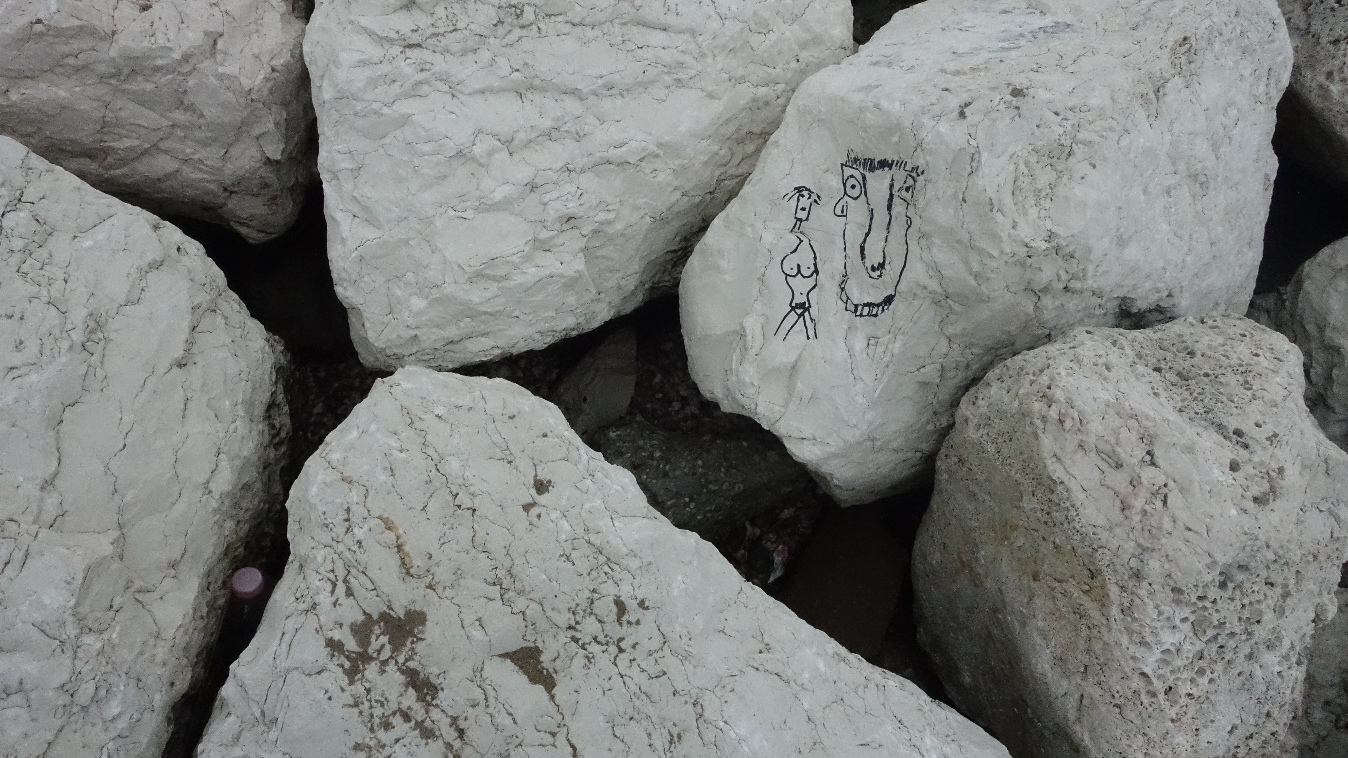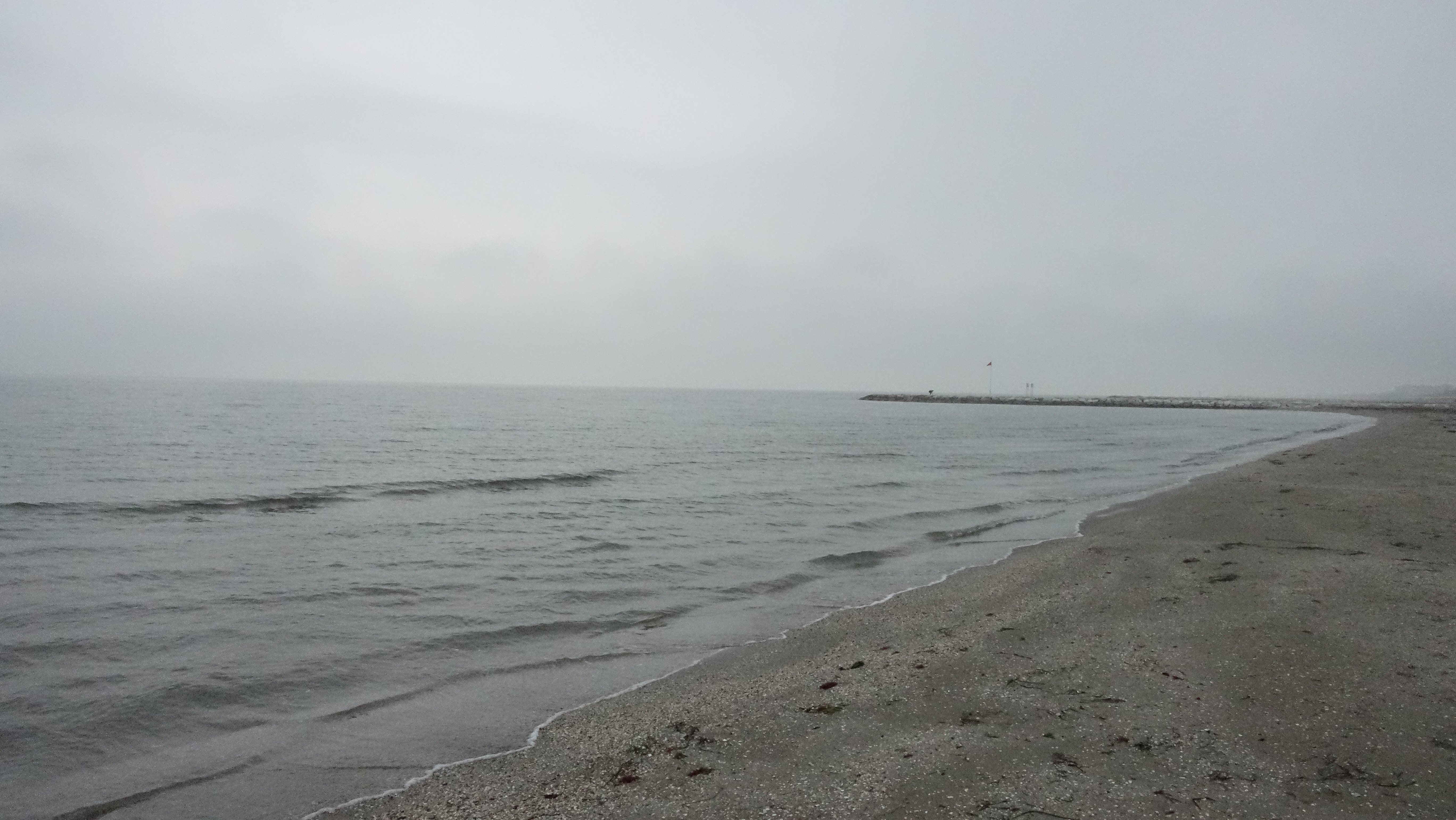 season quiet shopping street to the public beach. There was a snack bar there, with distinctly modern architecture, sort of late sixties amusement park modern, a sign outside announced “self service pizza”. I wondered about that as I headed for the beach. Beach chairs like lonely soldiers and been set out on a smoothed section of sand close to the snack bar. There were no sun bathers, he’ll there was no sun. I approached the shore and when I got to the water I hung a right and on instance started strolling the empty beach looking for bits of beach glass. Didn’t find much, thought I did see many, many, disposable baby diapers, all wrapped up and swollen with sea water and whatever else. Oh well, every beauty has blemishes, even the Queen of the seas.