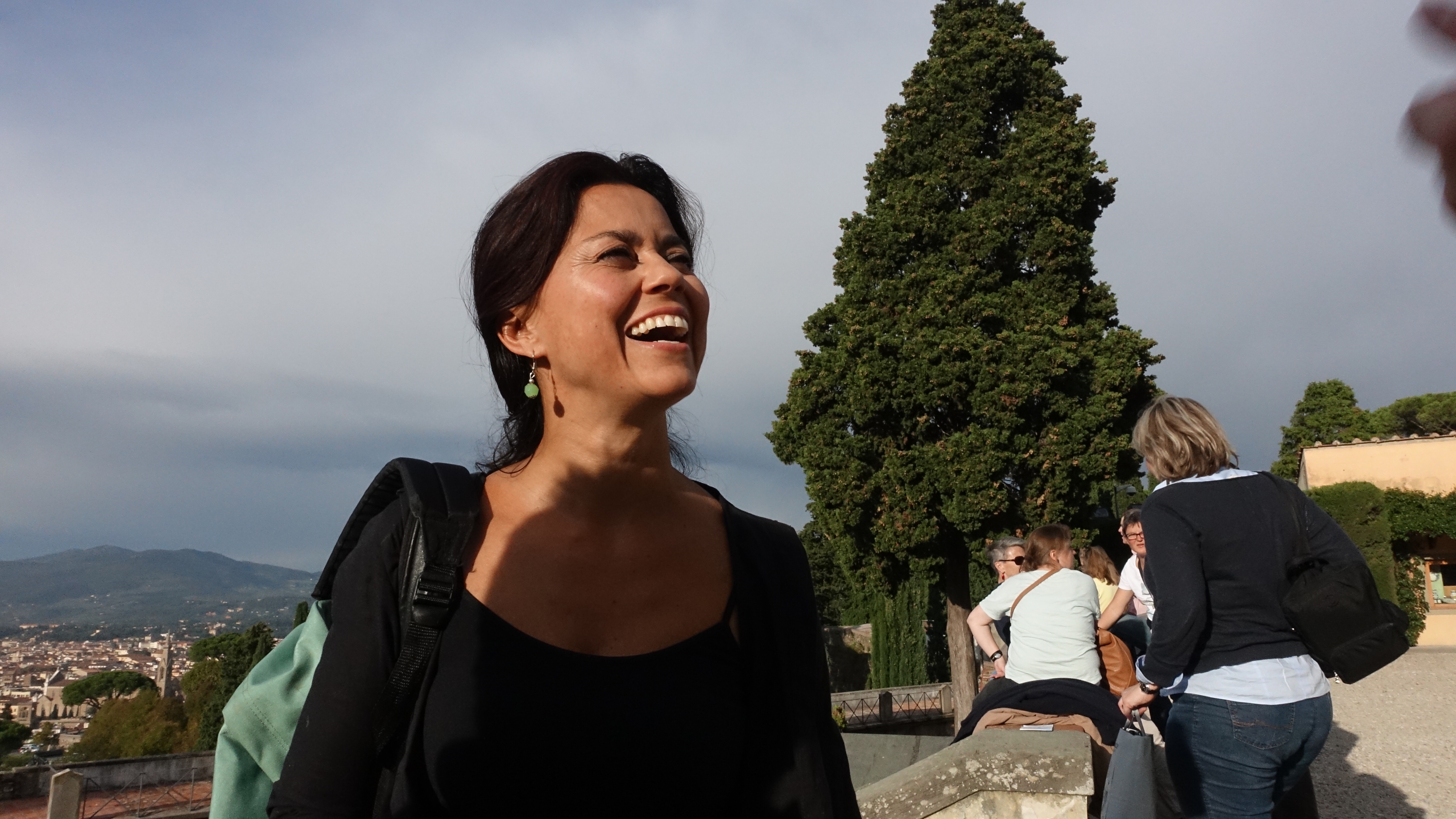 Another woozy morning, but it was worth it. If you want to party hard, hard, hard, party with Theatre Folk. They are experts at forgetting their troubles and getting happy. Some breakfast, plenty of coffee and water, then a shower and packing for the day’s travels, taking a later train so I can have lunch with Allesandro a Bernard from The Global Theatre Project. Once I was clean and packed I checked out, put my bag in the hotel storage closet and retired to the rooftop of the hotel to sit in the cool sunshine, enjoy the view of Florence, and write. I wrote and dozed and thought and wrote and dozed some more.